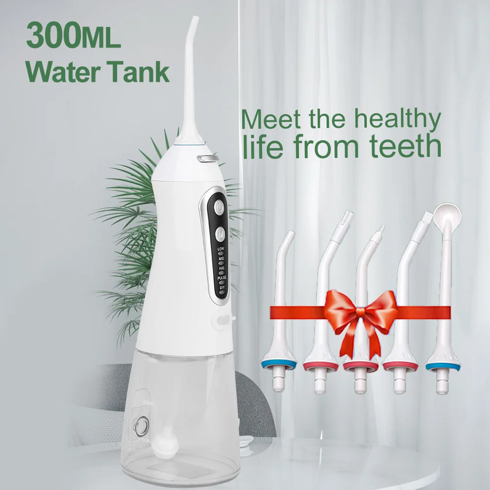 Ирригатор полости рта портативный с 5 насадками, 300 мл