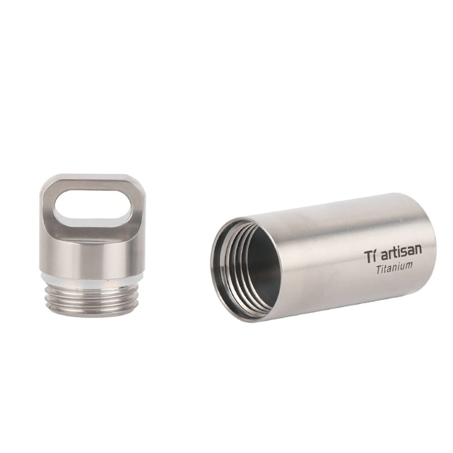 Описание:Совершенно новый и высокое качество.Особенности:Изготовлен из титана, высокая прочность, вес, прочный и долговечный светильник.Компактная резьба, запечатанная резиновыми кольцами, Полностью герметичная, водонепроницаемая и пылезащитная.Брелок сверху, легко добавить на брелок или рюкзак для практичного доступа.Может держать мелкие предметы, такие как таблетки, витамины, капсулы, зубочистки, крючки для рыбы и так далее.Подходит для кемпинга, рыбалки, выживания на открытом воздухе и т. д.