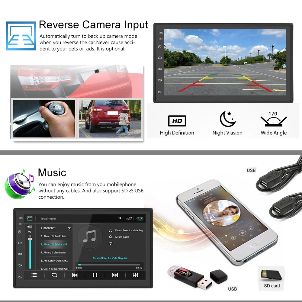 Особенности1. Обновленная двойная зеркальная ссылка системы: зеркальная ссылка IOS/AndroidIOS односторонняя: IOS поддерживает одностороннюю проекцию мобильный телефон на машинуДвусторонняя связь Android: Android поддерживает двустороннее соединение мобильный телефон2. Встроенный GPS-Прием: пользователи могут приобрести напрямую в play store для автономной навигации. При подключении к Wi-Fi Google Maps можно использовать идеально, вы можете пойти куда угодно и никогда больше не заблудиться!3. Встроенный Wi-Fi: Подключитесь к Wi-Fi, и вы обретете новый мир, самым удобным является онлайн-карта.4. Камера заднего вида: необходимо выбрать камеру, автомобиль подключается к реверсу для автоматического переключения (требуется дополнительно)5. Управление рулевым колесом: с помощью него вы можете управлять необходимыми функциями с помощью рулевого колеса, что более удобно6. Встроенный Bluetooth 4,0 с A2DP/Hands Free/телефонной книгойПоддержка громкой связи BluetoothМузыкальный плеер с BluetoothАвтозагрузка телефонных книг7,7 ''1024*600 цифровой экран высокой четкости8. Регистратор: вы можете выбрать регистратор, а в автомобиле есть воспроизведение, доказательства можно сохранить9. Двойной вход USB-адаптера10. Встроенный FM с 18 предустановленными станциями11. Поддержка файлового менеджера: поддержка загрузки, установки и удаления более тысяч приложений android12. Поддержка нескольких языков: поддержка языков, до 70 национальных языков13. Вы можете наслаждаться музыкой с мобильного телефона без каких-либо кабелей, а также поддержкой USB-соединения.14.FM-радио: онлайн-музыка, вы можете передать музыку на автомобильную стереосистему через FM, чтобы наслаждаться оригинальным автомобильным стереозвуком.15. Высокое разрешение 1080P: емкостный сенсорный экран для удобства работы, хорошо продуманный пользовательский интерфейс только для автомобиляБеспроводная система Carplay: Беспроводная автомобильная система Carplay может тесно интегрировать пользовательское устройство iOS и опыт iOS с системой приборной панели. С помощью rs, которые используют Carplay, можно подключиться к автомобильной системе через Bluetooth для осуществления голосовой навигации, совершения звонков, отправки и получения сообщений, а также прослушивания музыки. Доступно только для iPhoneОсобенностиСистема: Android 10,1Чипсет: 8227L-DEMOРазмер экрана: 7 дюймовРазрешение экрана: 1024*600Зеркальная ссылка: Android/IOSРадиочип: MTKВыходная мощность: 4*45 ВтРабочая температура:-40 ℃-80 ℃Функция управления рулевым колесом: ПоддержкаВерсия Bluetooth: 4,0Чип усилителя мощности: AC7315Радиодиапазон: FM/RDSВидеовыход: ПоддержкаКарты: Встроенные офлайн-картыWIFI: поддержкаUSB: двойной интерфейс USBИзменение логотипа автомобиля: ПоддержкаАудиоформат: APE/FLAC/WAV/MP3/WMA и т. д.Формат видео: MKV/RMVB/AVI/MP4/MDV и т. д.Формат изображения: PNG/JPEG/JPG/GIF/WBMP/BNP и т. Д.Ключевое слово заводских настроек: 8888Язык: китайский/английский/французский/итальянский/Корейский/японский/арабский/испанский/португальский/русский/Турецкий/Вьетнамский/Иврит/Польский/немецкийПродукт включен1 Автомобильный MP5 плеер1 Антенна GPS1 х жгут питания2 USB-адаптера1 входной и выходной провод RCA1 х кулачковый провод2 x монтажный кронштейн
