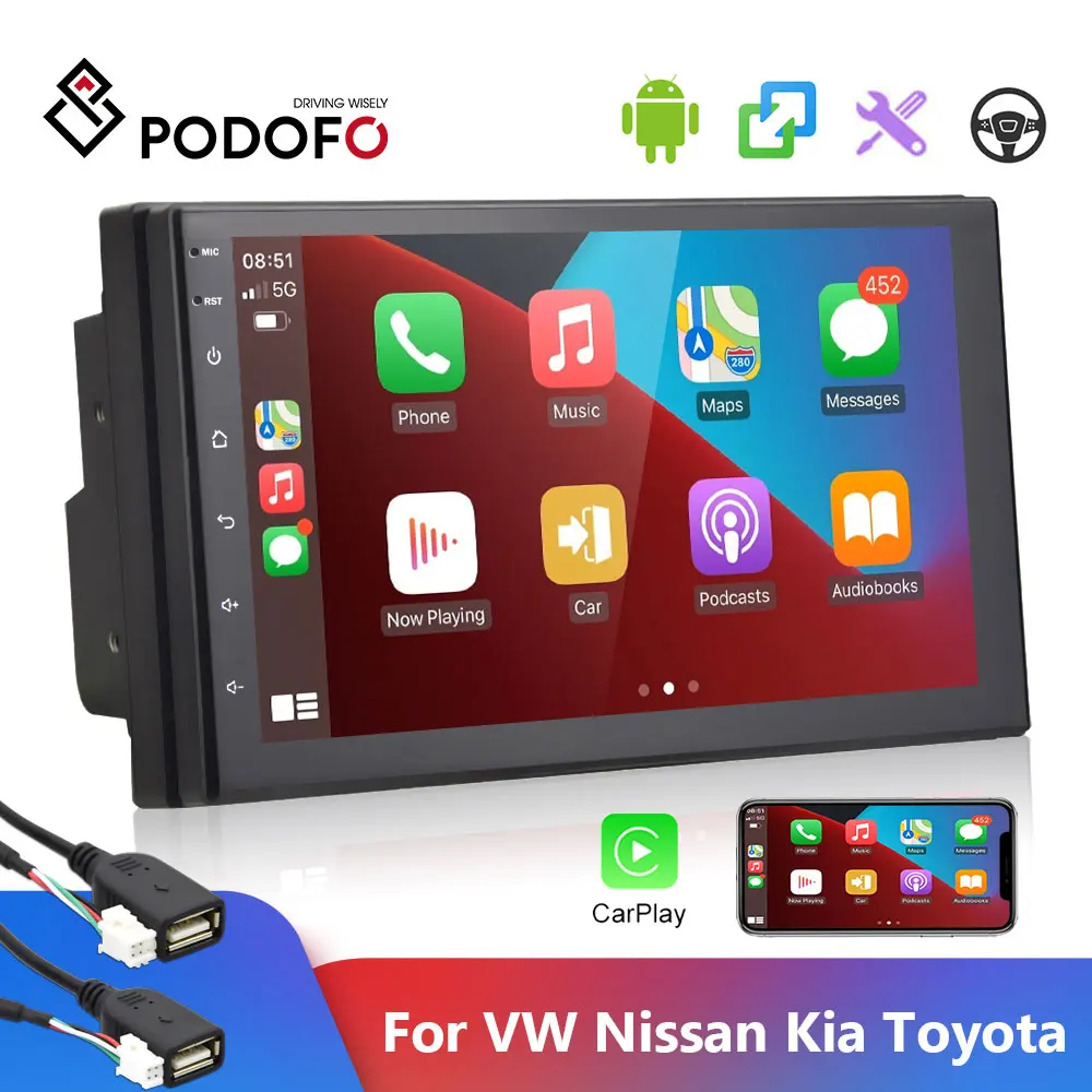 Автомагнитола Podofo, 2 Din, Android, мультимедийный видеоплеер, стерео, GPS, для Volkswagen, Nissan, Hyundai, Kia, Toyota