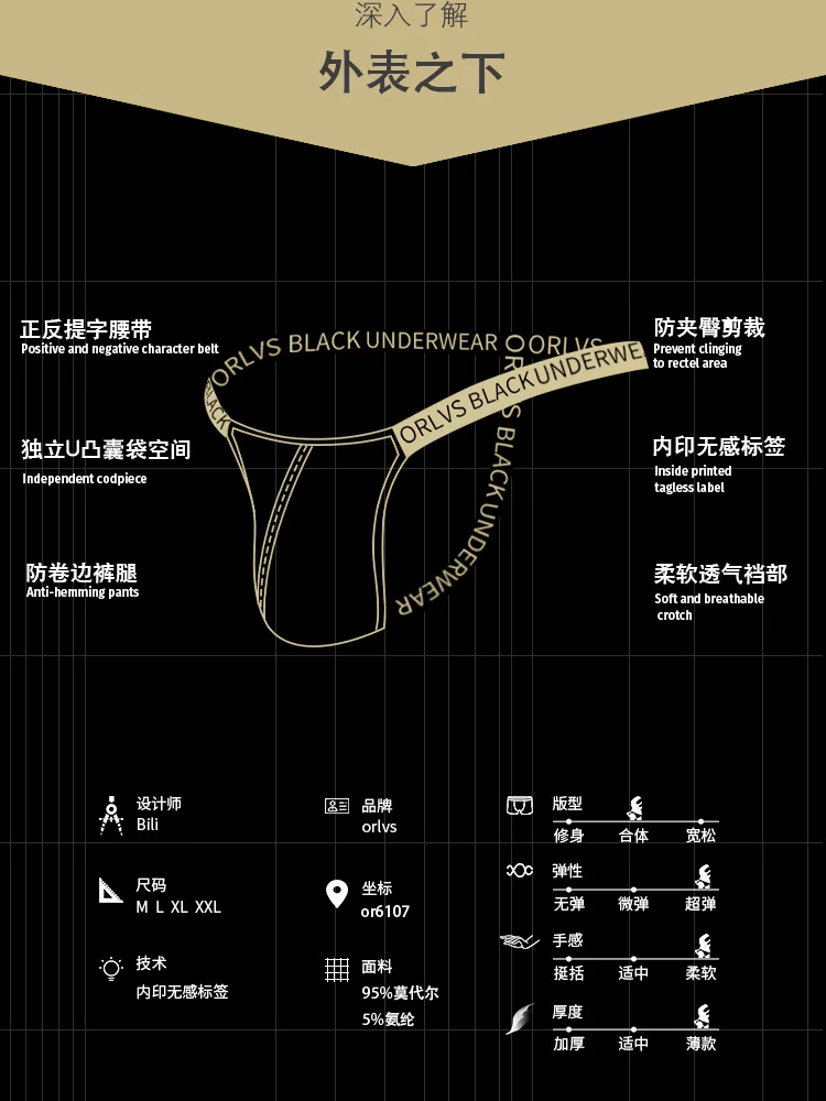 Мужские трусы стринги из модала ORLVS, Черные стринги с низкой тали...