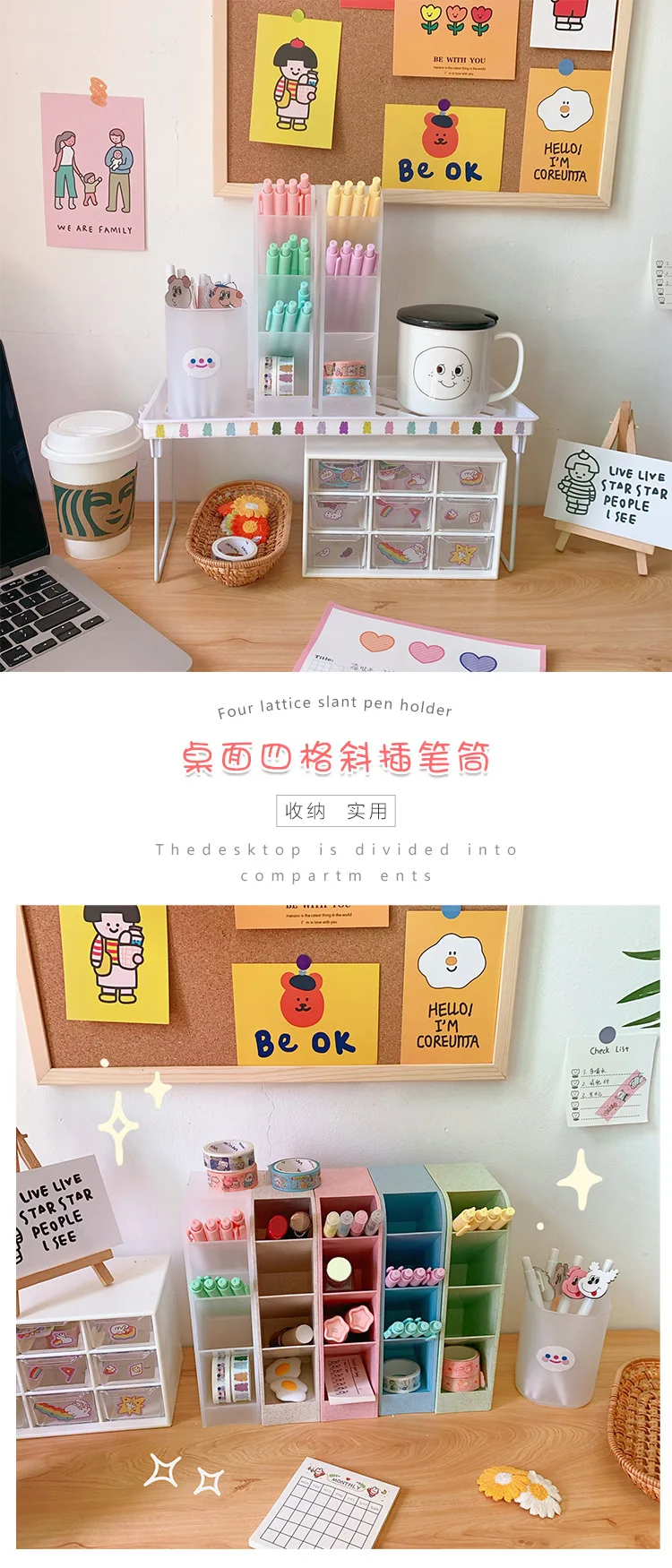 Милые инструменты для хранения, Настольный ящик для хранения с 4 ячейками, ящик для косметических ручек, карандашей, кистей для макияжа, помады, контейнер для хранения для дома и офиса