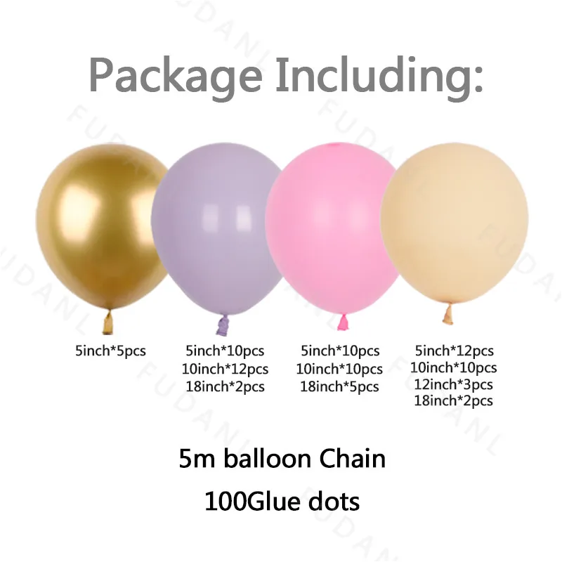 Шары воздушные золотистые, розовые, пурпурные, 133, комплект гирлян...