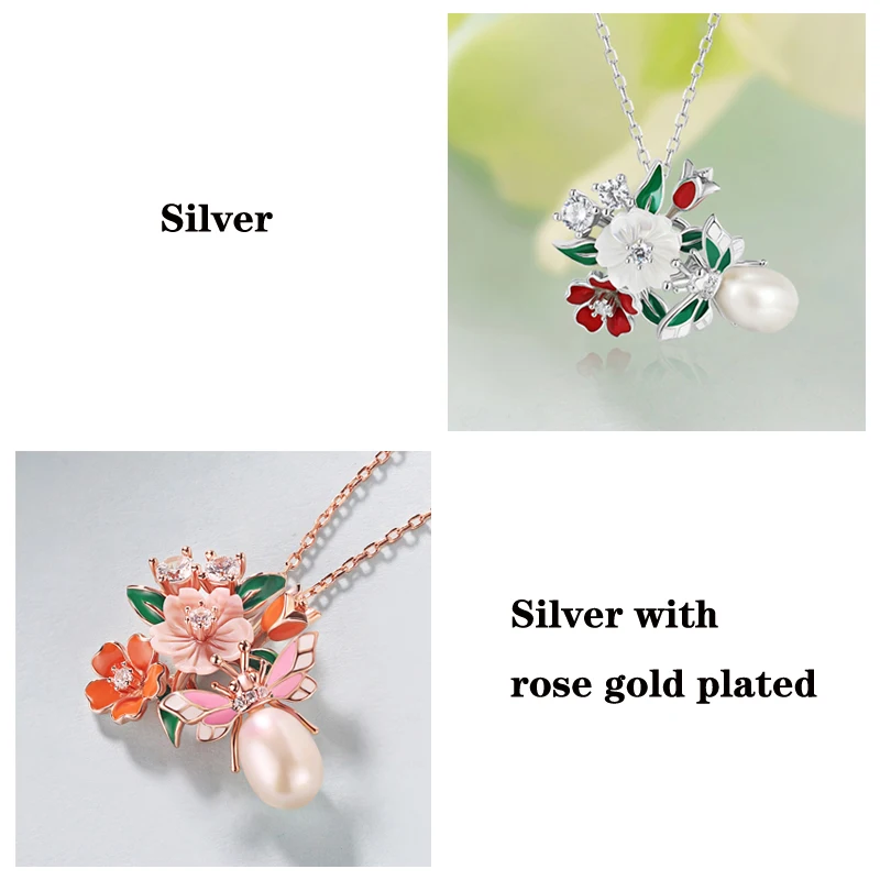 Комплект из колье и серёг, из серебра 925 пробы, с натуральным жемчугом