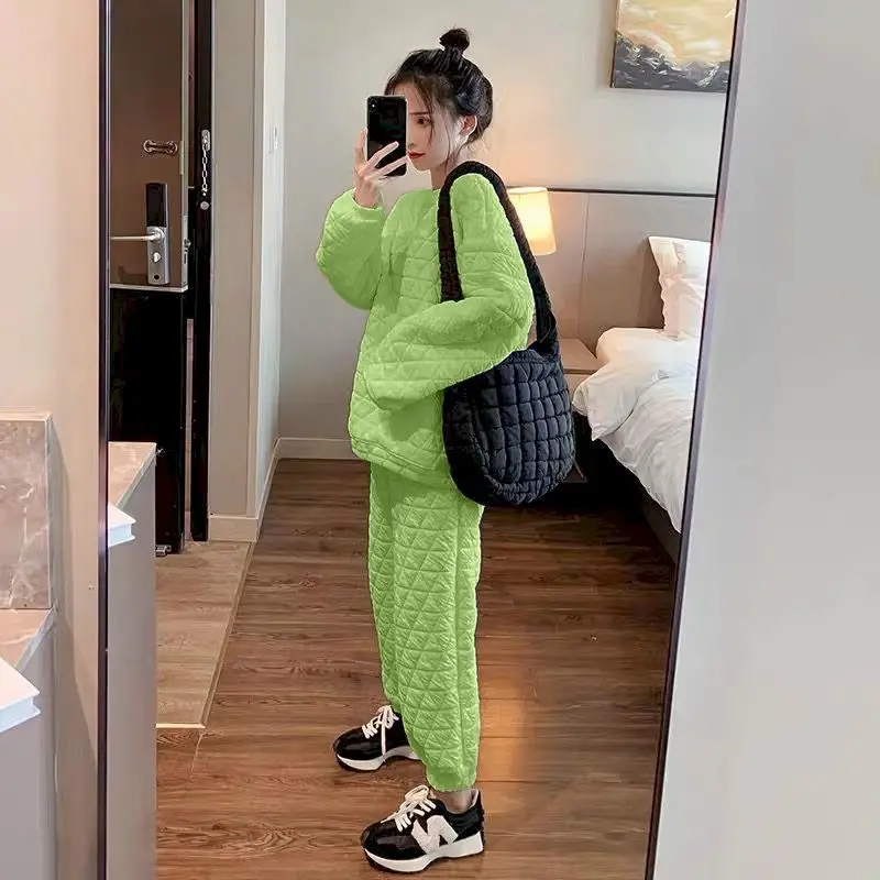 Женский Повседневный костюм, однотонный спортивный костюм с длинным рукавом и брюками, Осень-зима 2022