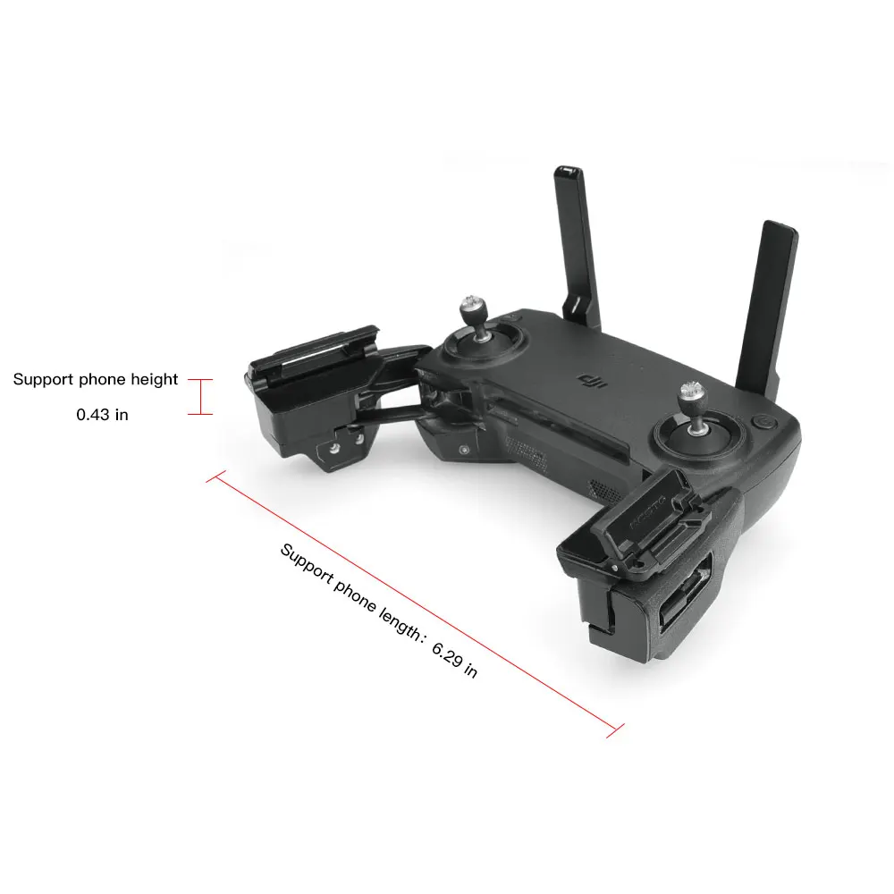 Характеристика:1. Простая установка и удаление: включение и выключение в считанные секунды.2. Легкий, портативный, легко носить с собой и устанавливать.3. Этот держатель только для мобильного телефона, не работает для планшетов.4. Предназначен для того, чтобы зафиксировать мобильный телефон горизонтально, поэтому ваш мобильный телефон надежно крепится к контроллеру.С этим держателем, ваш телефон может быть использован с Чехол5. Совместимость с оригинальным кабелем передачи данных, малый размер, легко носить с собой,6. Поддерживает мобильные телефоны общей толщиной 8-12 мм.Описание:Материал: АБС-пластикПрименимые модели: для DJI Mavic Pro Platinum,Mavic Air,Mavic Mini,Mavic 2 Zoom/Pro.Spark/DJI Mini SE Дроны с дистанционным управлением,Цвет: черныйВес нетто: 13 гРазмер продукта: 3,3*3,5*2,3 см (однометный)Упаковочный лист:2 шт. чехол для телефона с дистанционным управлениемПримечание: Не включает Пульт дистанционного управления дроном.