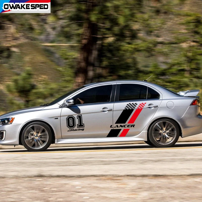 1 Набор гоночных наклеек с решетками для Mitsubishi Lancer, двухсторонний декор для автомобильной двери, виниловая пленка, наклейки для кузова, спортивные полосы