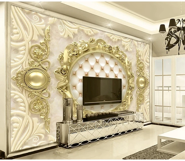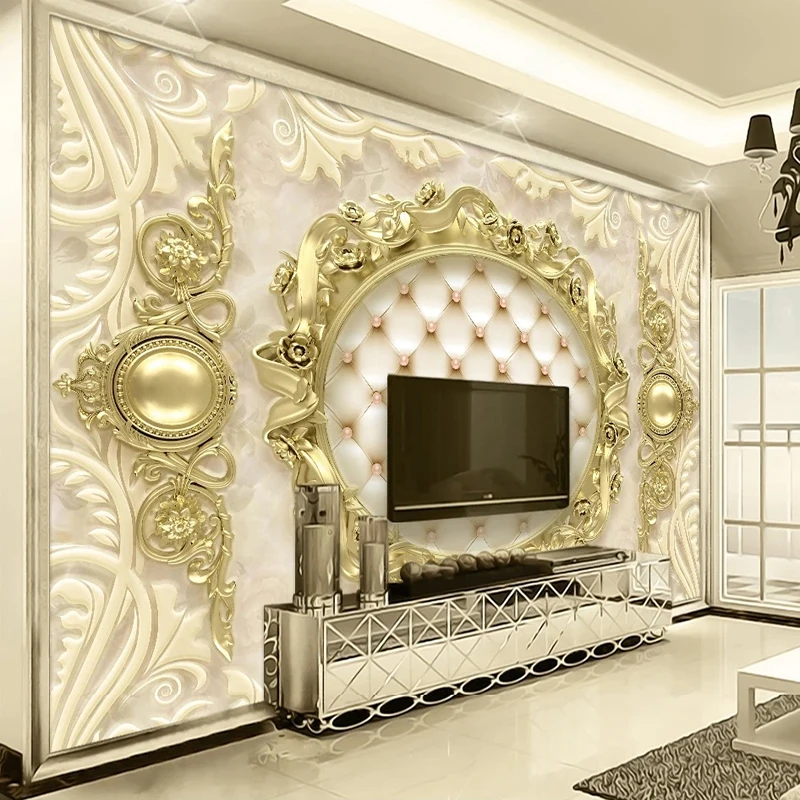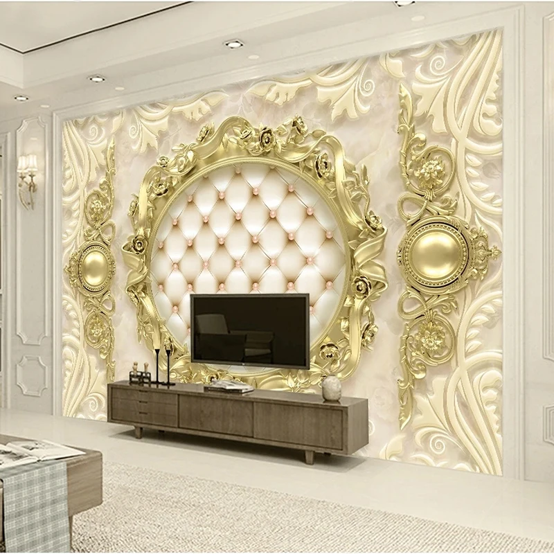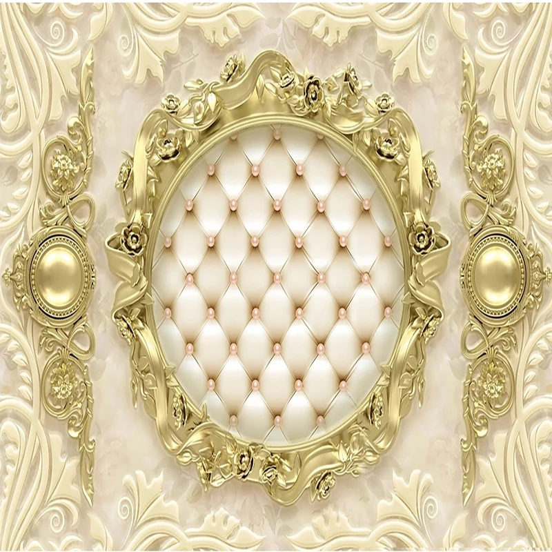 Пользовательская настенная ткань, фреска, 3D роскошный золотой Европейский узор, мягкая сумка, Фреска для гостиной, фона для телевизора, настенные декоративные обои