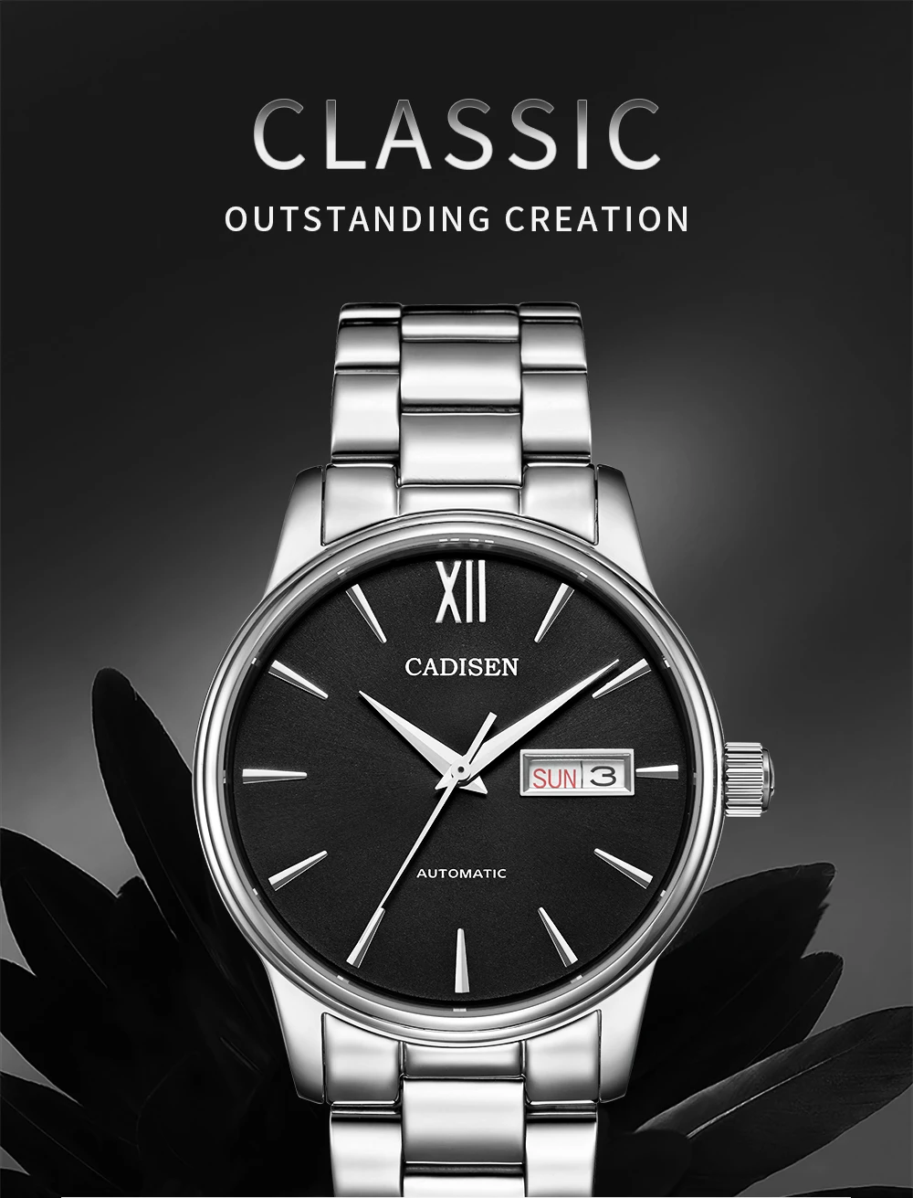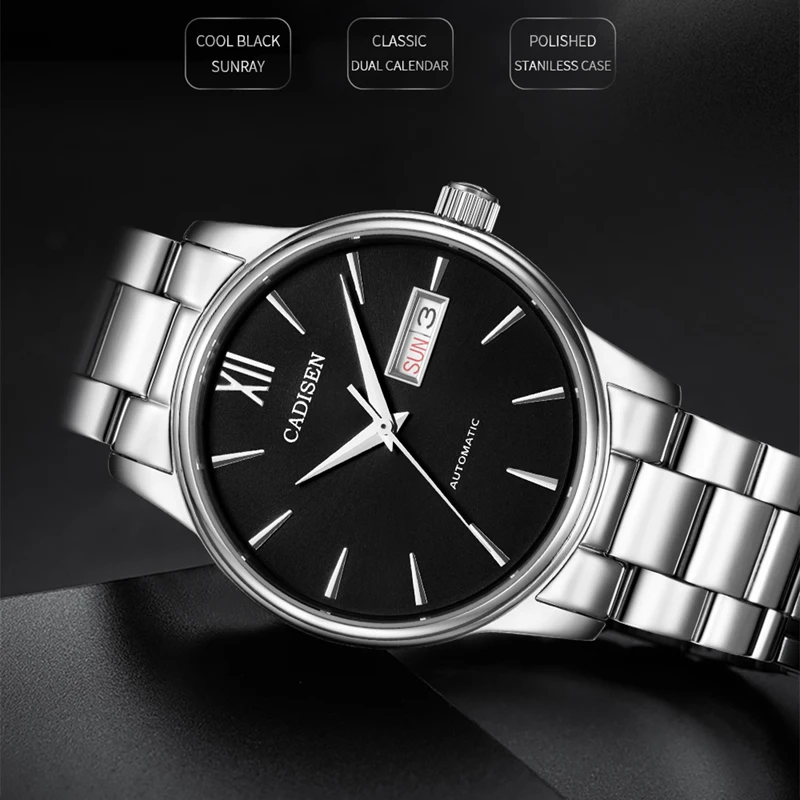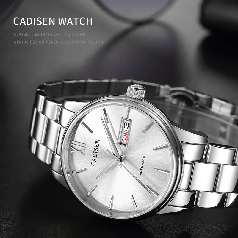 Часы наручные CADISEN Мужские автоматические, брендовые механические в японском стиле, NH36A, с датой, неделей, C1032