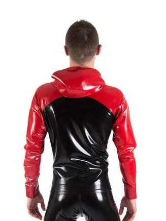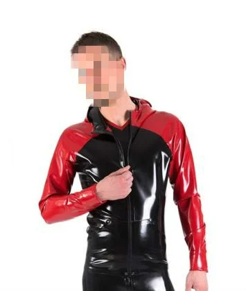 Латексное пальто резиновая Мужская Красивая черно-красная повседневная спортивная куртка с капюшоном для отдыха