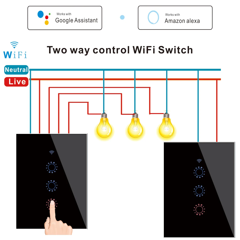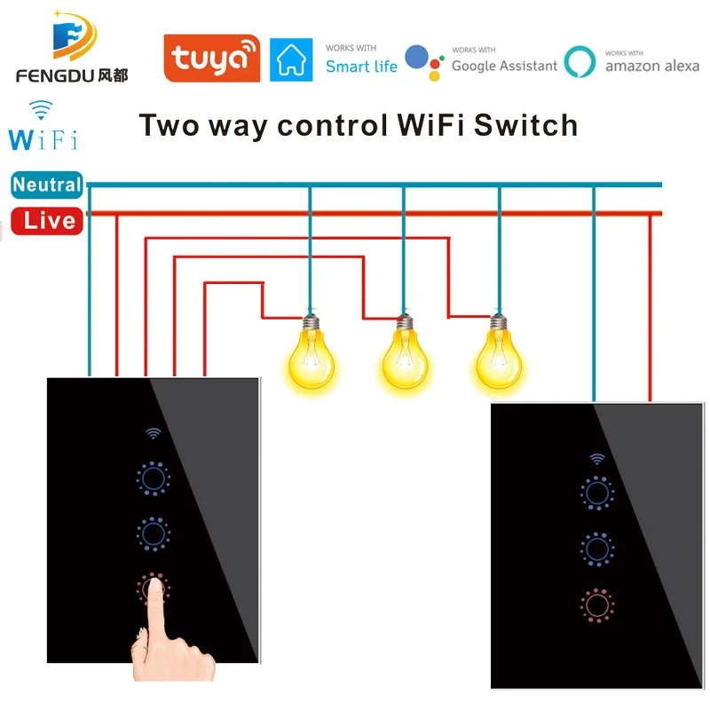 Главный переключатель может использоваться в качестве переключателя независимости, но рабочий переключатель не может работать независимо.При настройке пары приложений, пожалуйста, используйте только основной переключатель в соответствии с инструкцией пользователя.Этот смарт-переключатель Wi-Fi должен быть powerd как с помощью живой, так и с нейтральной линии, пожалуйста, отключите питание при установке и отказе от установки, работает профессиональным человеком.