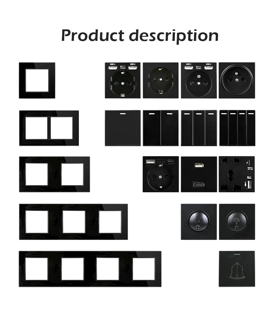 Черная закаленная стеклянная настенная розетка серии DIY link. Вы можете свободно комбинировать розетки, которые вы хотите купить.