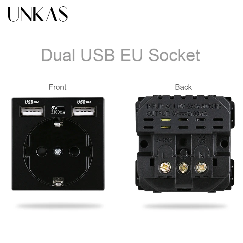 UNKAS черная стеклянная панель DIY Бесплатная комбинация Тип C французская розетка ЕС двойной USB 1 2 3 4 банды 1/2 кнопка включения/выключения