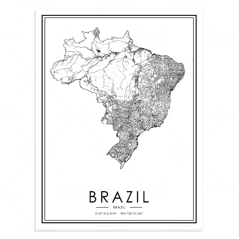 Настенная картина с черно-белым принтом в Бразилии, Картина на холсте, скандинавский постер, декор для гостиной и дома