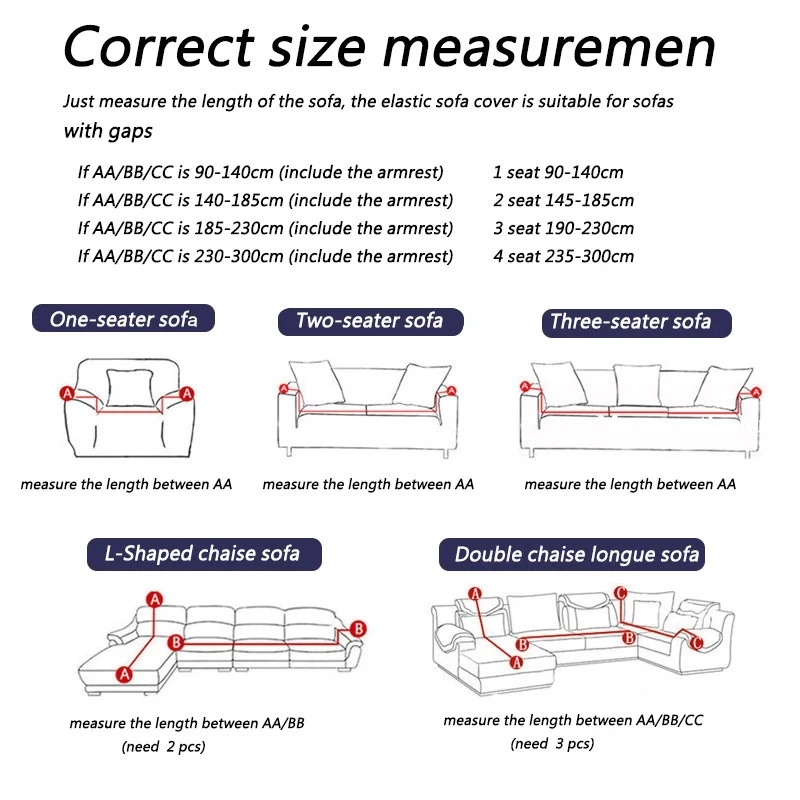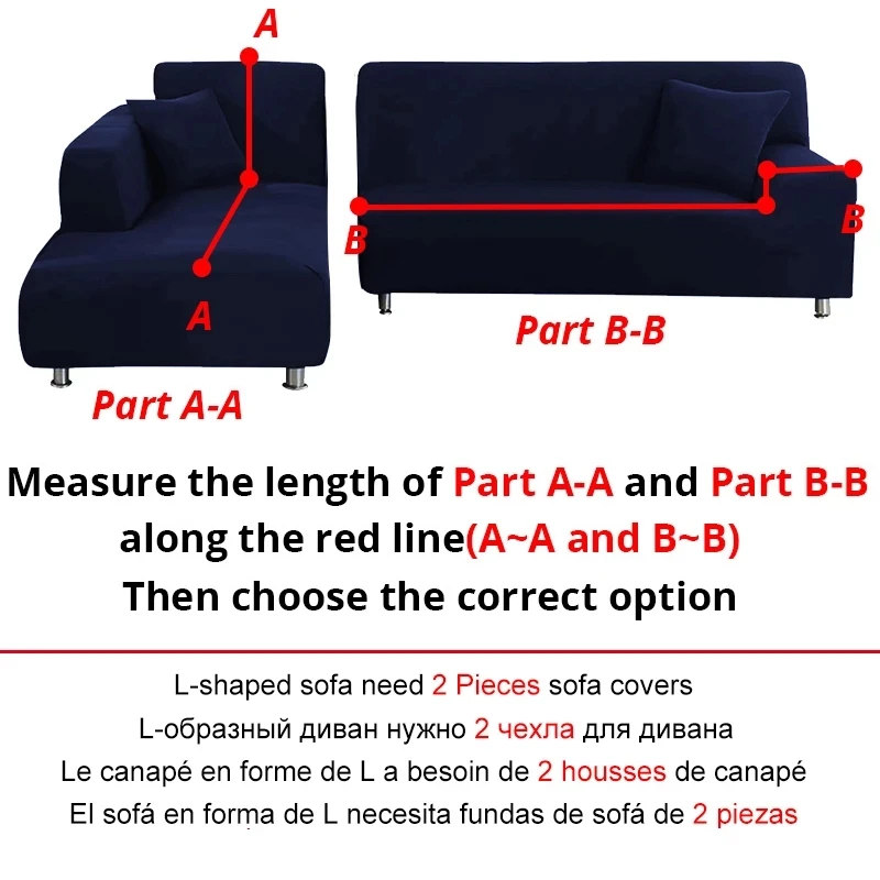 Примечание:Пожалуйста, внимательно прочитайте:1. Товар-только чехол для дивана, не включая наволочку.2. У нас есть 4 размера на выбор, пожалуйста, проверьте правильный размер вашего дивана, если вы не знаете, как выбрать правильный размер, чтобы измерить размер или сообщить нам свой размер дивана, мы поможем вам.3. Размер Наволочки 45х45см.4. Например: если длина A-A детали составляет 210 см, а B-B-120 см,Вы должны выбрать 1 часть A-A 195-230 см (три места) и 1 часть B-B 90-140 см (один местный)Пожалуйста, тщательно измерьте размер вашего дивана.Также учитывайте подлокотники. Если вы не принимаете подлокотники во внимание, чехол для дивана может не поместиться на кончиках дивана: вам нужно купить 2 чехла в общей сложности для завершенного l-образного дивана, диван должен быть L типа или угла в сочетании с 2 частями отдельно.5. Посылка включает в себя: чехол для дивана * 1 шт., l-образный диван нужен 2 шт.--- Пожалуйста, обратитесь к изображению ниже ---