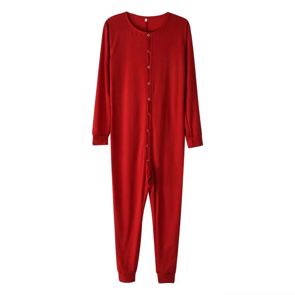 Модный мужской Пижамный комбинезон однотонный с длинным рукавом удобная одежда для сна на пуговицах мужской комбинезон одежда для сна Домашняя одежда женская