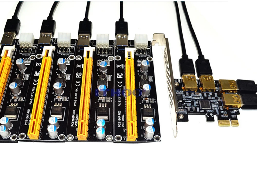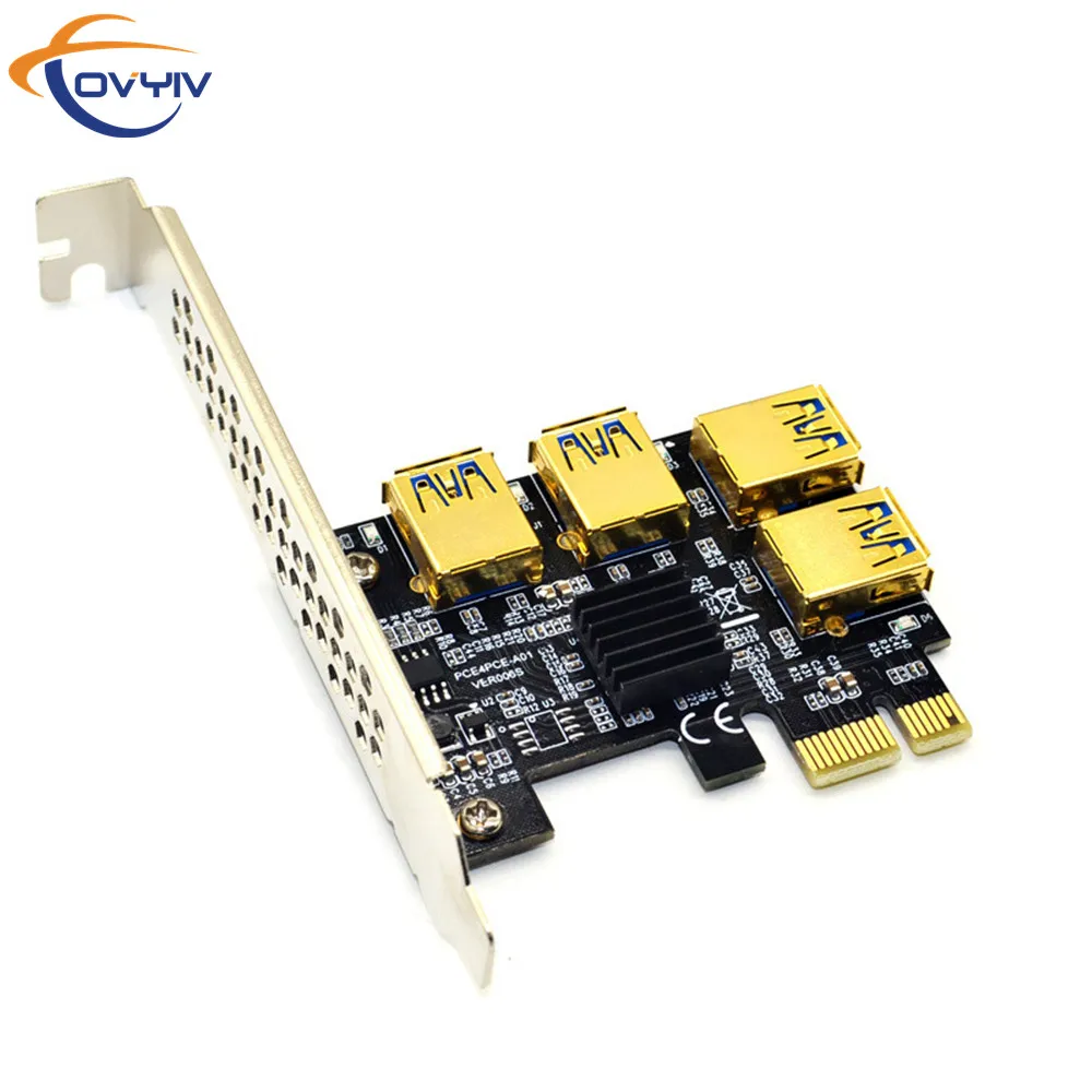 Адаптер COVYIV PCIE Express, 1x до 16x, Райзер 009S, карта PCI-E от 1 до 4 USB 3,0, слот, PCIe порт, множественная карта для майнинга биткоинов BTC