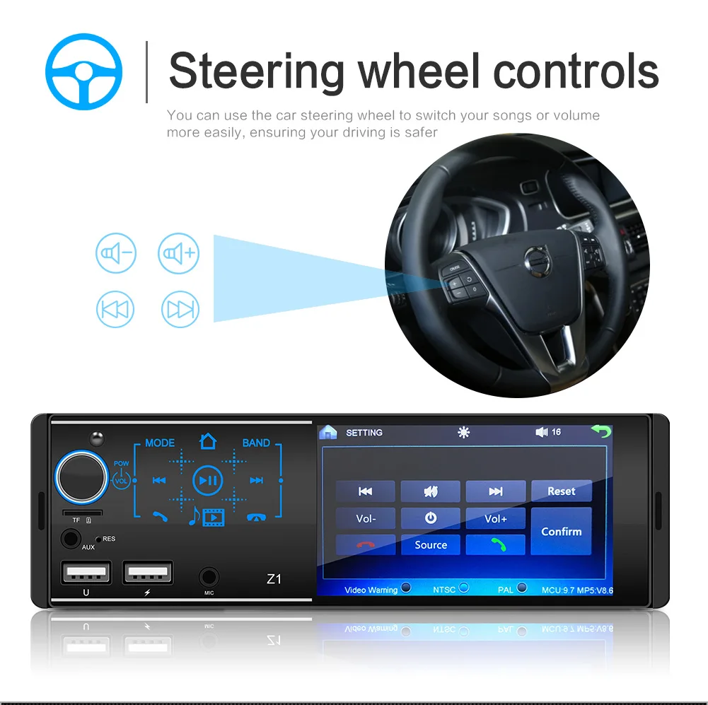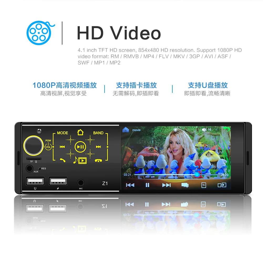 Универсальный 1 Din автомобильное радио Зеркало Ссылка MP5 плеер Bluetooth Handsfree USB TF Aux Mic вход 4,1 "сенсорный экран ISO стерео радио