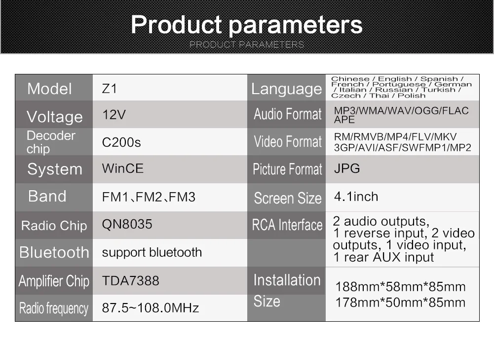 * Поддержка языка меню hinese, английский, русский, испанский, французский, португальский, немецкий, итальянский, турецкий, чешский, тайский, польский