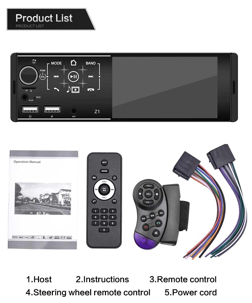Универсальный автомобильный радиоприемник Mirror Link, MP5 плеер, Bluetooth, громкая связь, USB, TF, Aux, микрофон, вход 4,1 дюйма, сенсорный экран, ISO, стерео радио, 1 Din