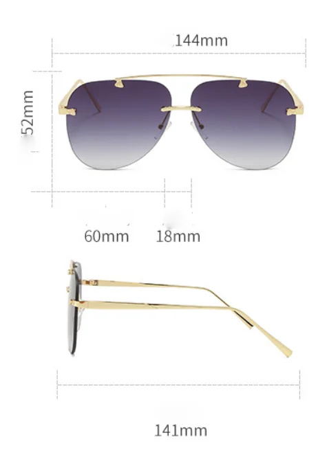 Солнцезащитные очки-авиаторы без оправы для мужчин и женщин, винтажные авиаторы из сплава с градиентными линзами, металлические овальные, черные, коричневые, 2021