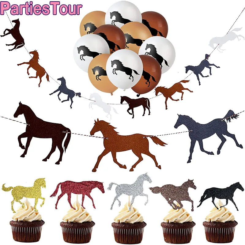 Лошадь тематический Декор Лошадь Баннер лошадь латексные шары лошадь топперы для торта на день рождения скачки на день рождения товары для свадебной вечеринки