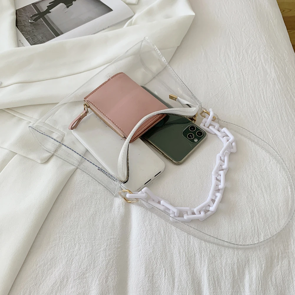 Сумка женская из ПВХ, прозрачная, на молнии, с цепочкой