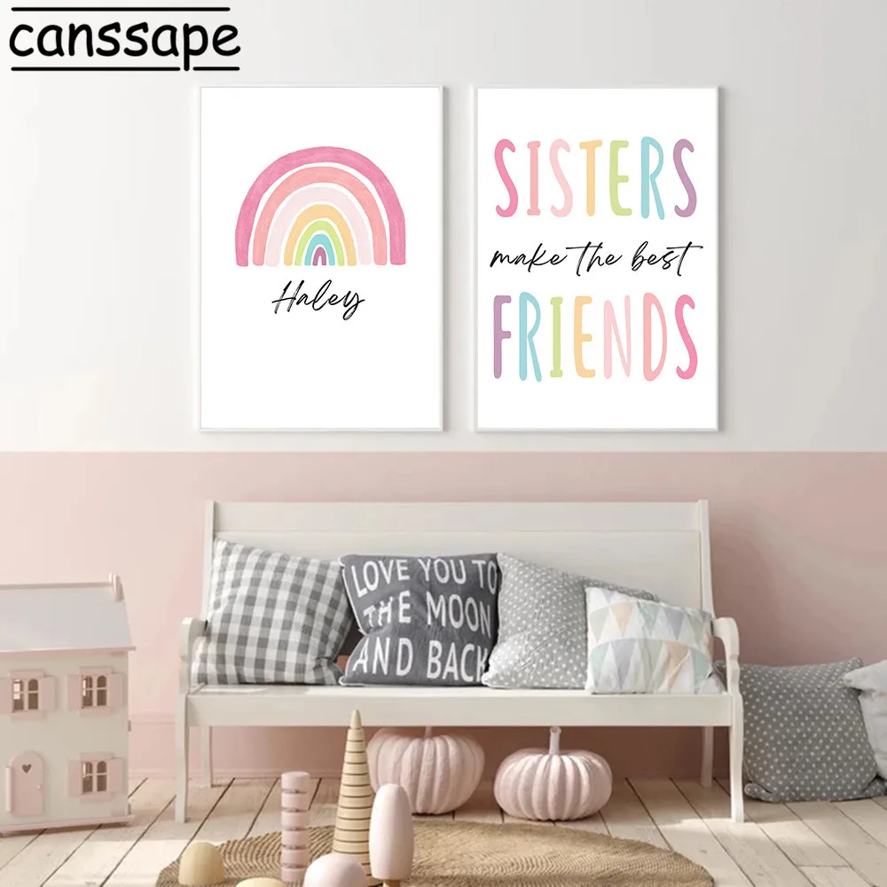 Постер с радугой сестры друзья настенная живопись персонализированное имя печать на холсте скандинавские настенные картины для декора комнаты для маленьких девочек