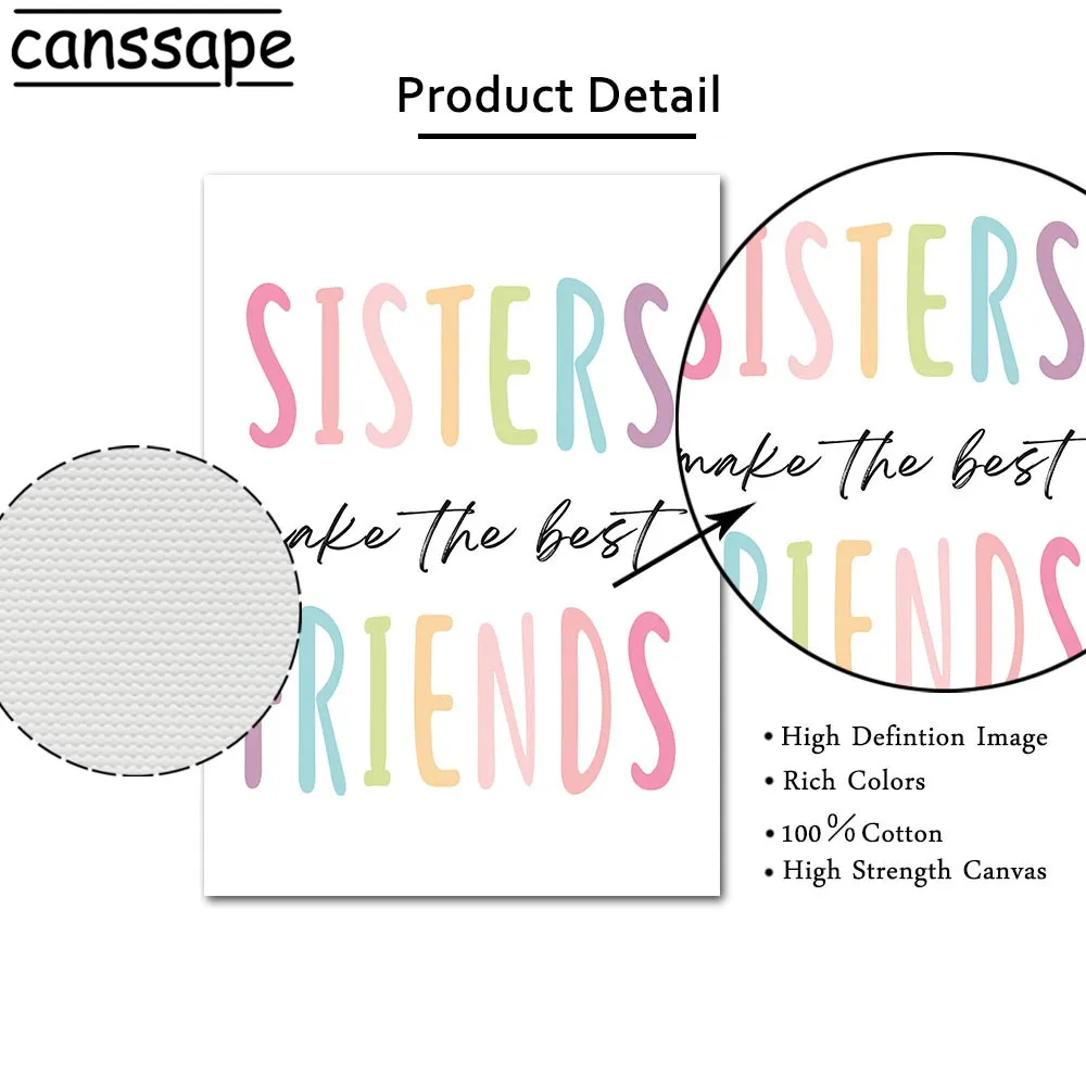Постер с радугой сестры друзья настенная живопись персонализированное имя на заказ Печать на холсте нордические настенные картины для декора комнаты маленькой девочки