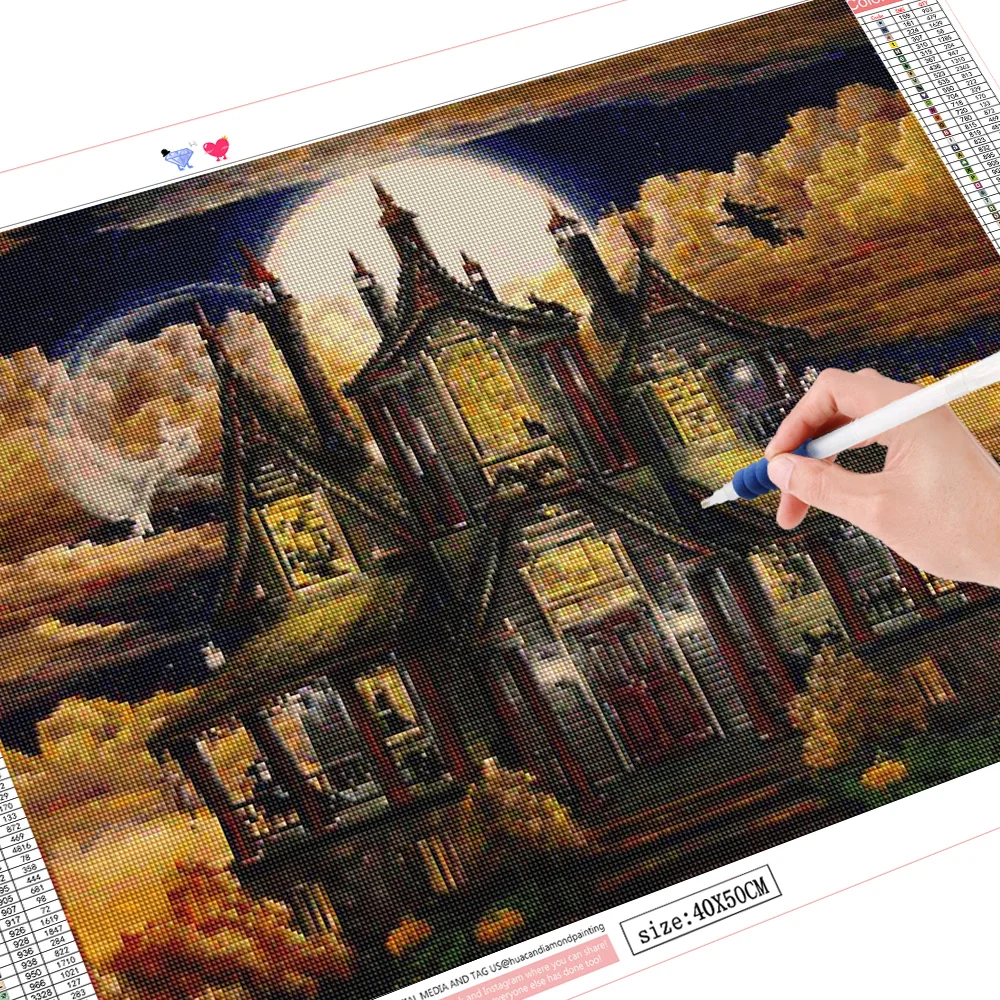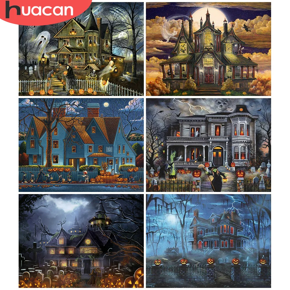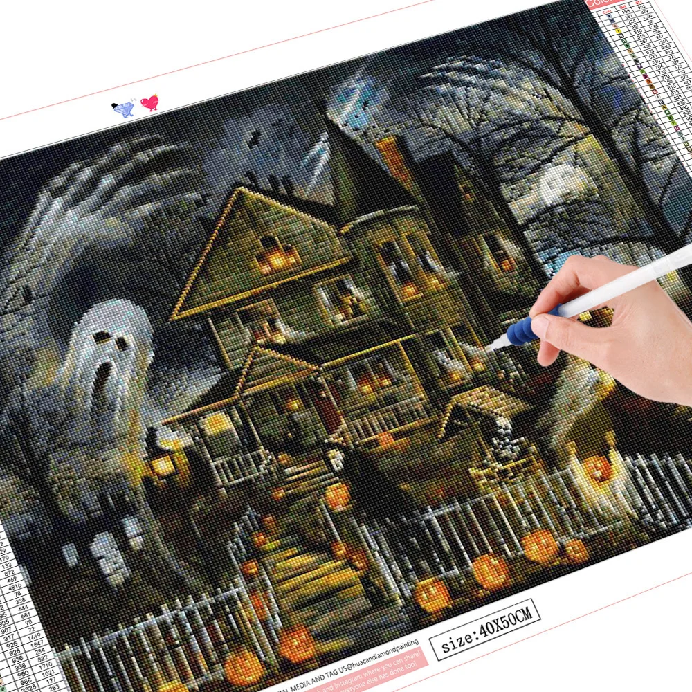 Алмазная вышивка Дом на Хэллоуин, квадратная 5D Вышивка