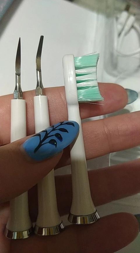 1. Плоская головка (очистите большое Калибр на поверхности зубов)2. Заостренная головка (чистые небольшие вычисления в деснах)3. Насадки для зубных щеток (подходят для ежедневной чистки)4. Стоматологическое зеркало (см. Внутреннюю сторону зубов)