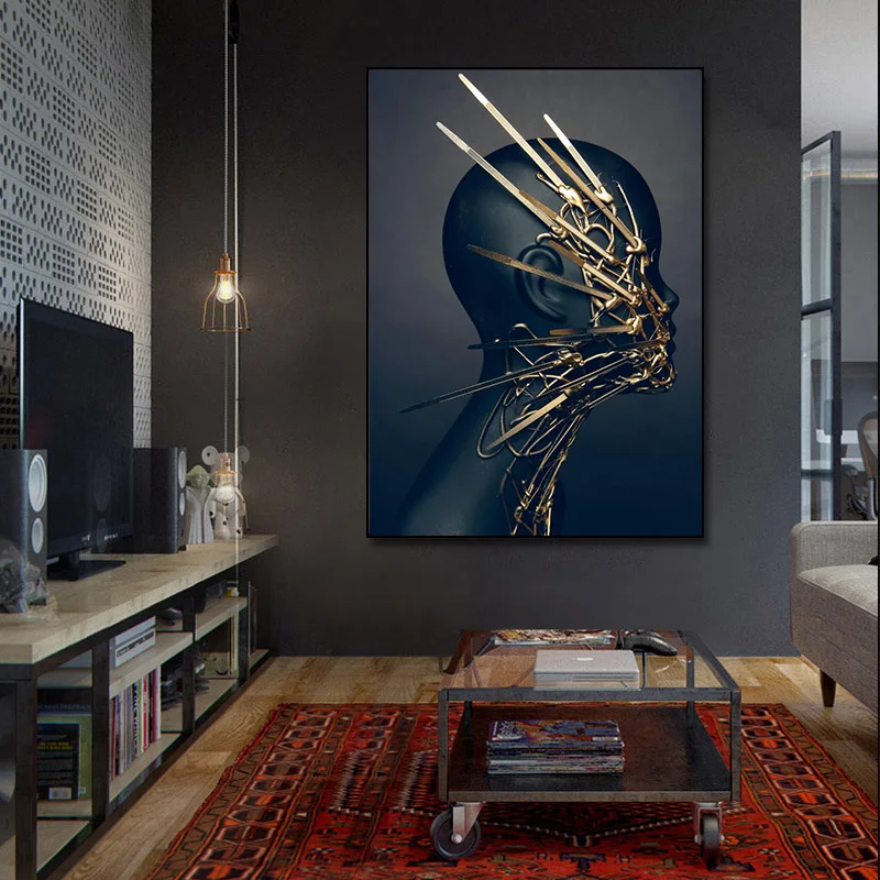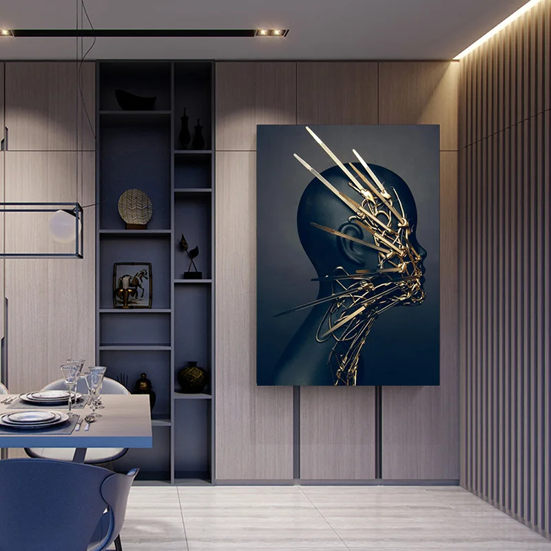Современные плакаты и принты, черный робот с золотой маской, Картина на холсте для гостиной, скандинавский Декор для дома, настенные картины