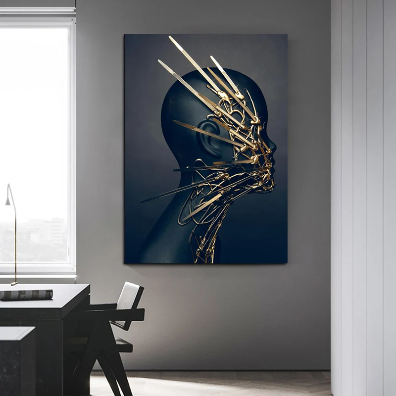 Современные постеры и принты, черный робот с золотым дизайном, маска, холст, живопись для гостиной, скандинавский домашний декор, настенные художественные фотографии