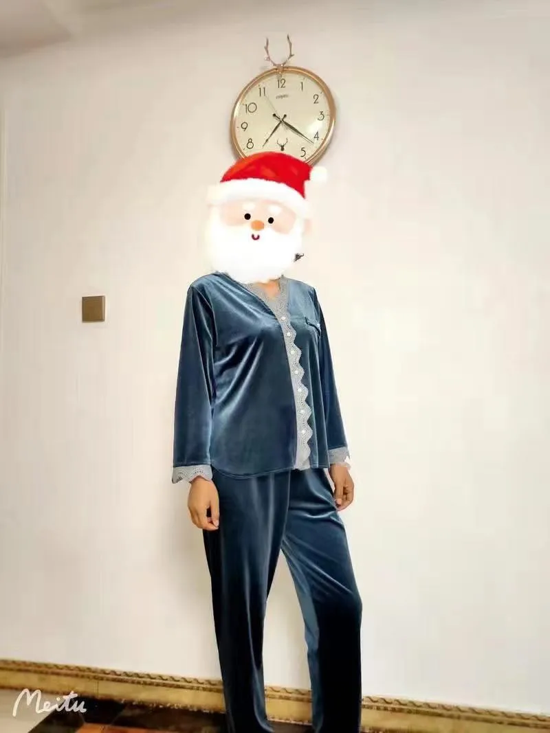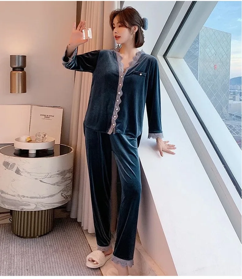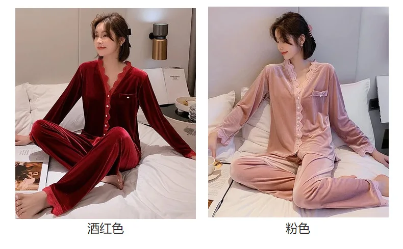 Зимний новый бархатный пижамный комплект для женщин, теплая Пижама, Прямая поставка, домашняя одежда, пижама с длинным рукавом, осенняя домашняя одежда