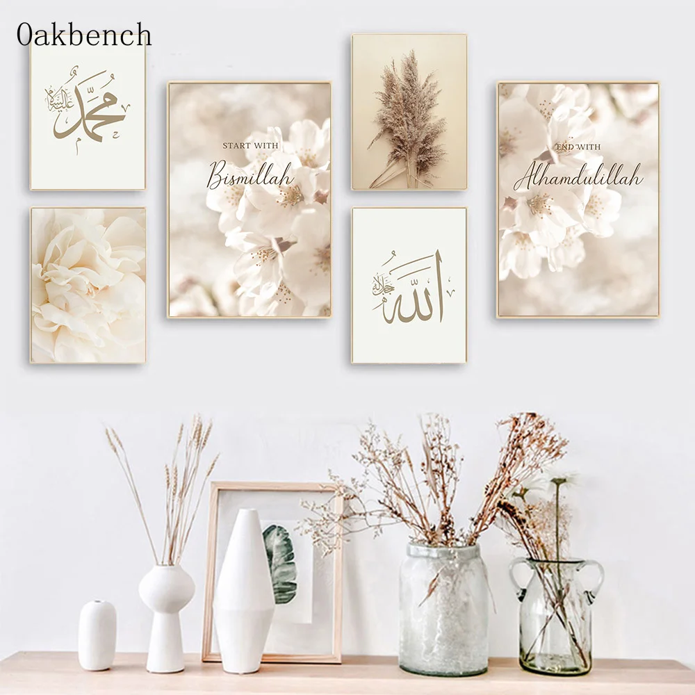 Картина на холсте с исламскими цитатами, настенный постер с мраморн...