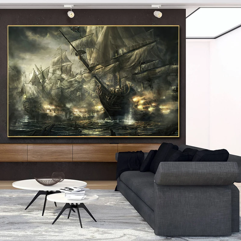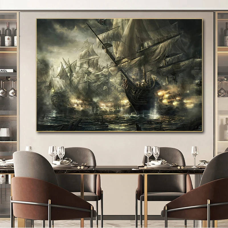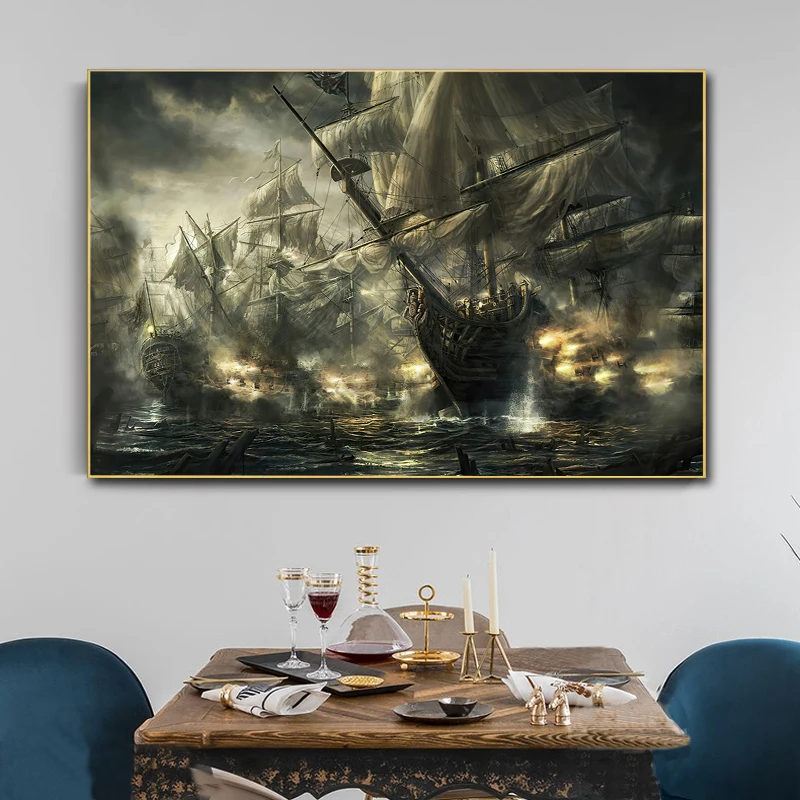 Винтажная Картина на холсте с изображением пиратского корабля, парусных судов, скандинавский плакат и принты, настенные картины для отеля, домашний декор, комнатный Куадрос