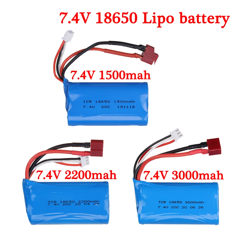 Аккумулятор 7,4 В, 1500 мА ч, 2200 мА ч, 3000 мА ч, 18650 мА ч, для радиоуправляемых Wltoys 12423, 10428, 12429, 12401, 12402, 12402A, запчасти для радиоуправляемых автомобилей, грузовиков, лодок, дронов