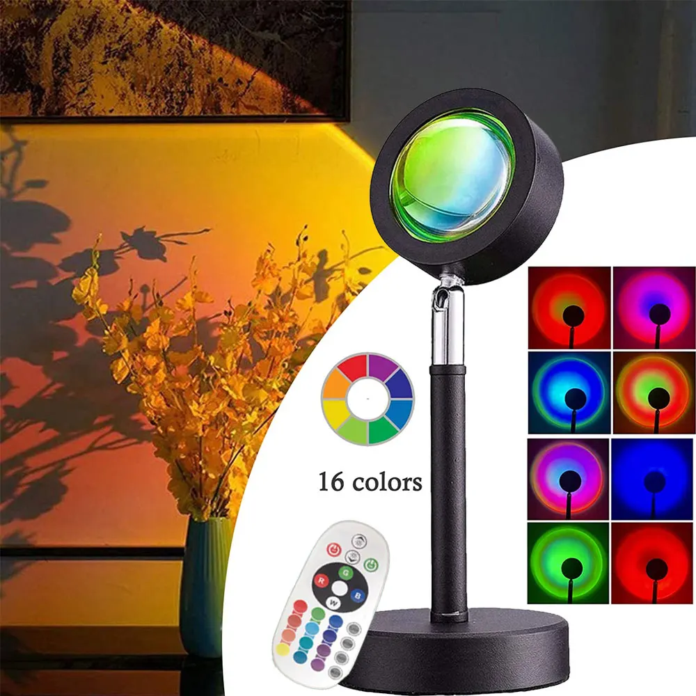 16 цветов, проекционная лампа С закатом, светодиодный ночник, Радужный проектор, атмосфера, фон для дома, кофейни, настенная настольная лампа, светильник s