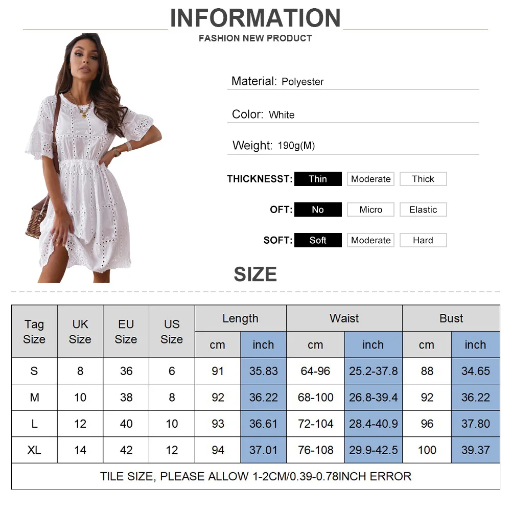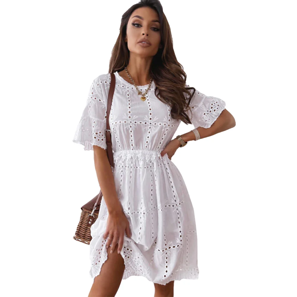 Элегантное кружевное платье миди с вышивкой и оборками, с V-образным вырезом и рукавом-бабочкой, однотонные Повседневные платья в стиле пэчворк, модный пляжный офисный Сарафан