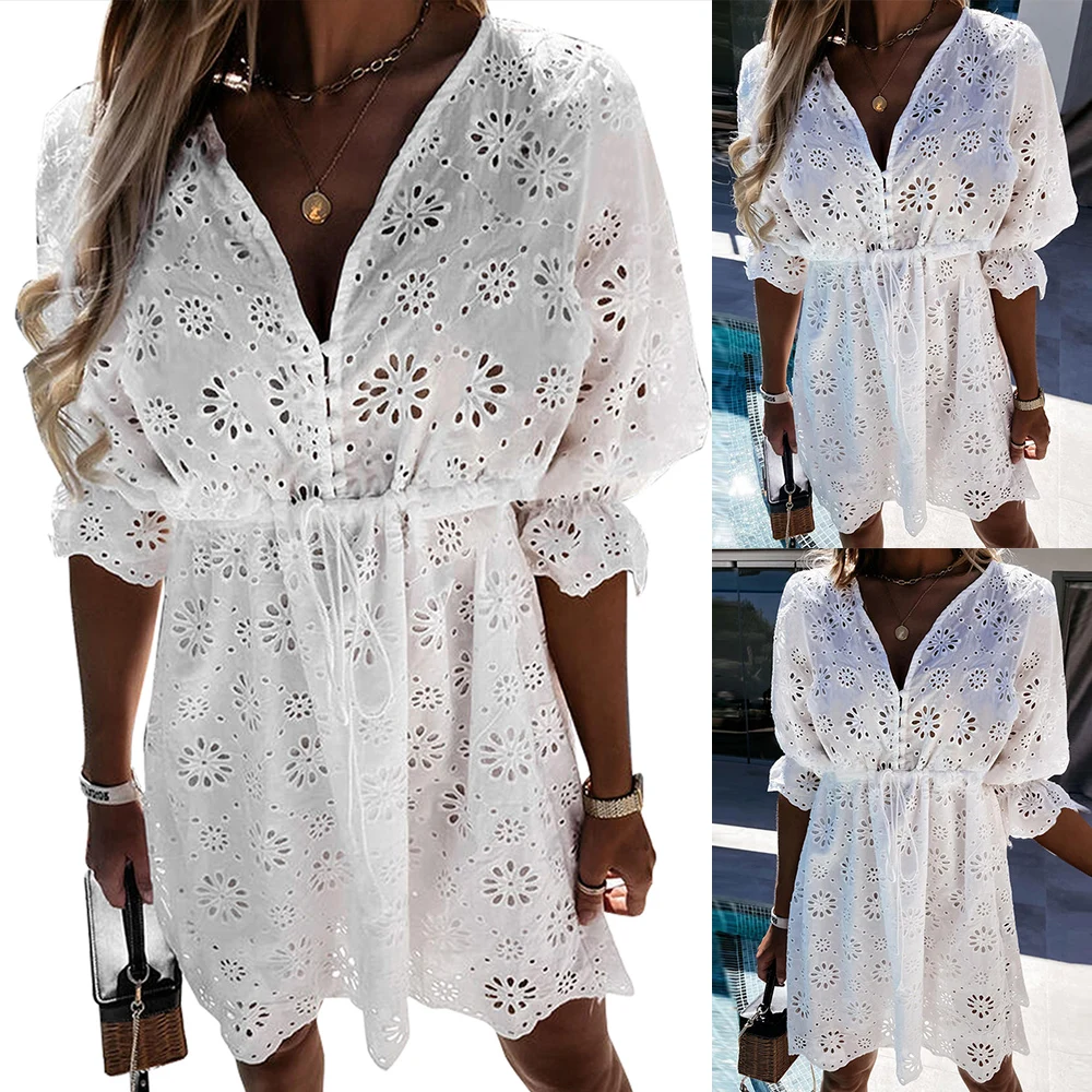Особенности продукта: Женское сексуальное Хлопковое платье с оборками и кружевным v-образным вырезом