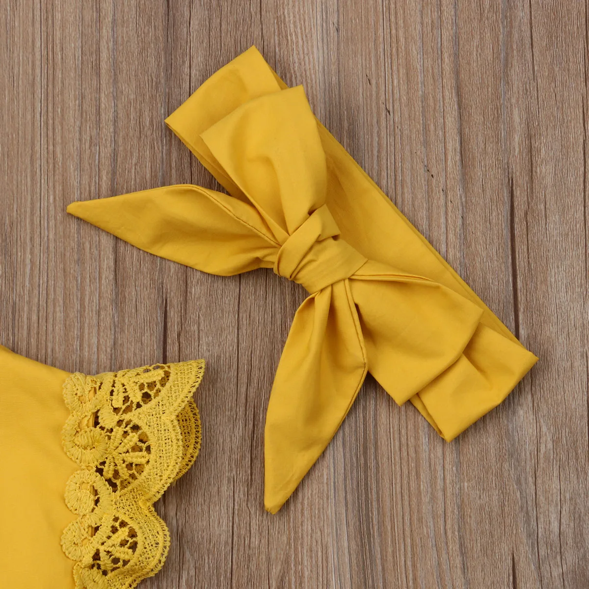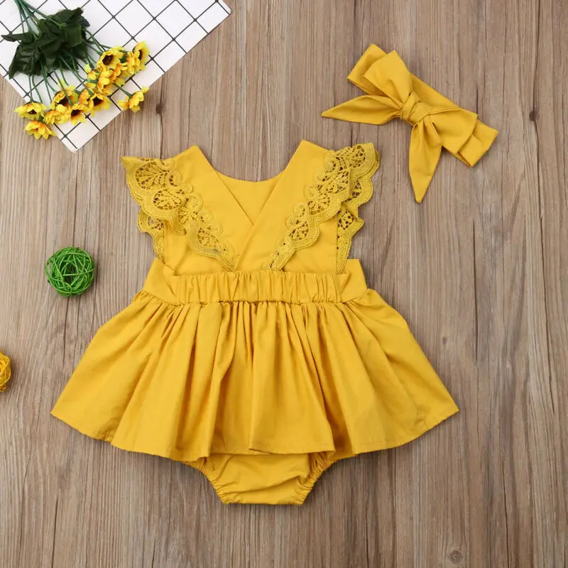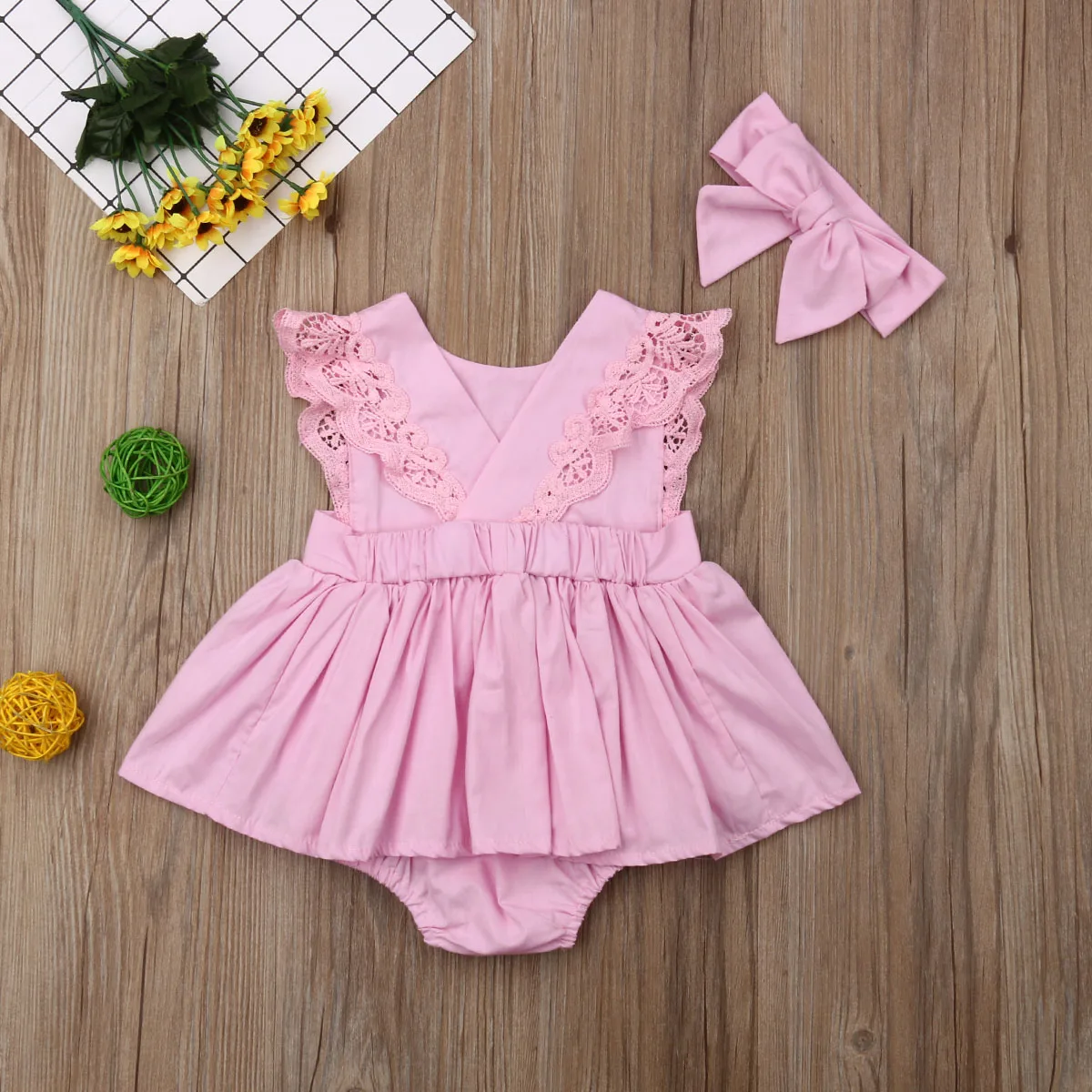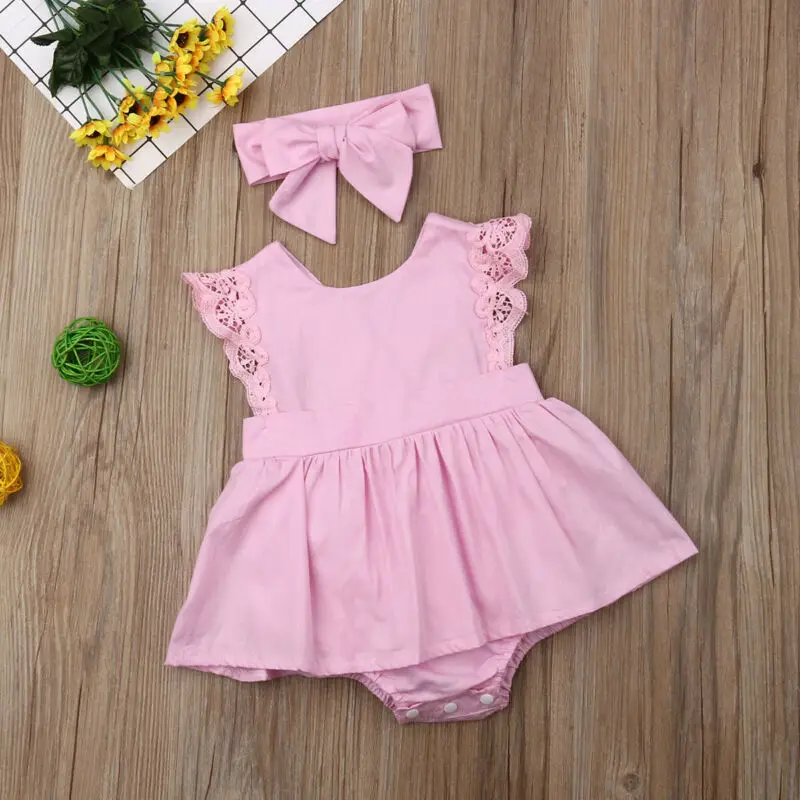 Детский кружевной комбинезон без рукавов, с повязкой на голову