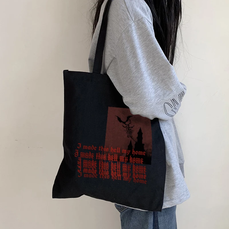 Винтажные вместительные повседневные женские сумки ins в стиле Харадзюку С буквенным принтом, Готическая Женская Холщовая Сумка, панк, Хип-Хоп сумка для покупок