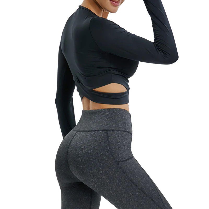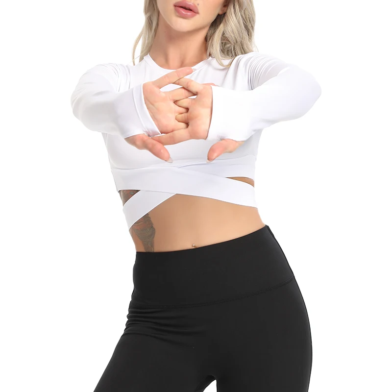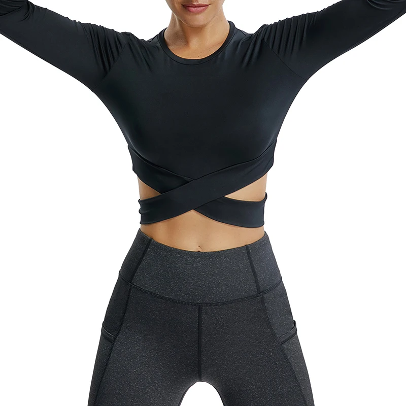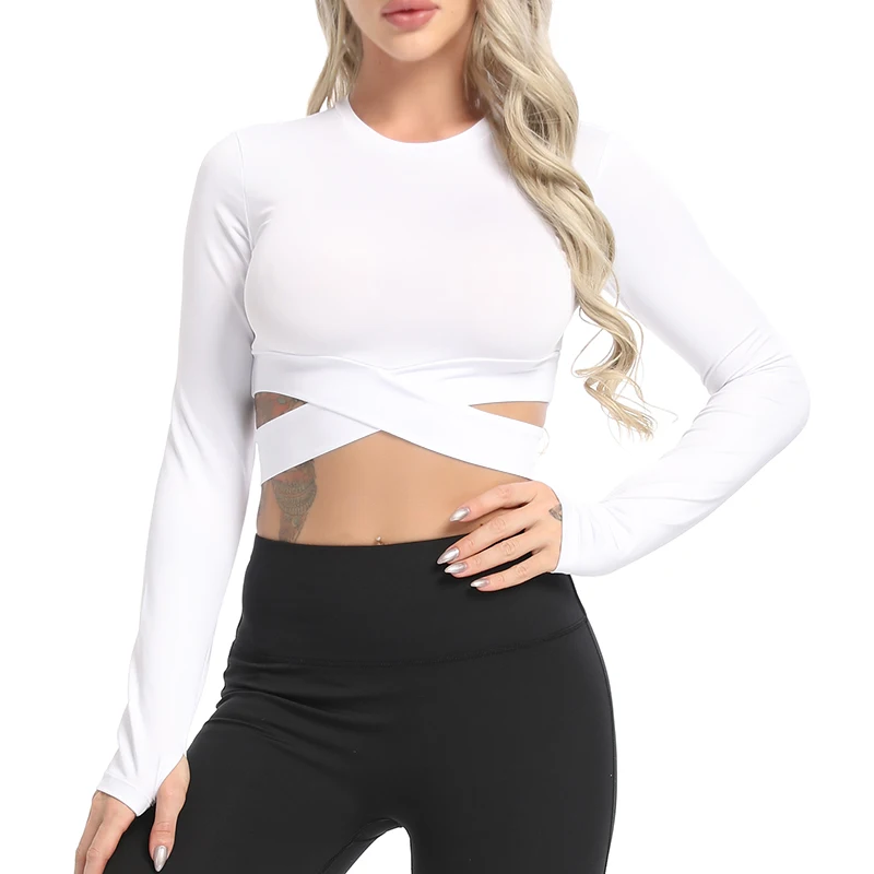 Сексуальные женские спортивные рубашки Crisscross, спортивные топы с длинным рукавом, женский наряд пуш-ап для женщин, быстросохнущая одежда для бега, фитнеса, тренажерного зала