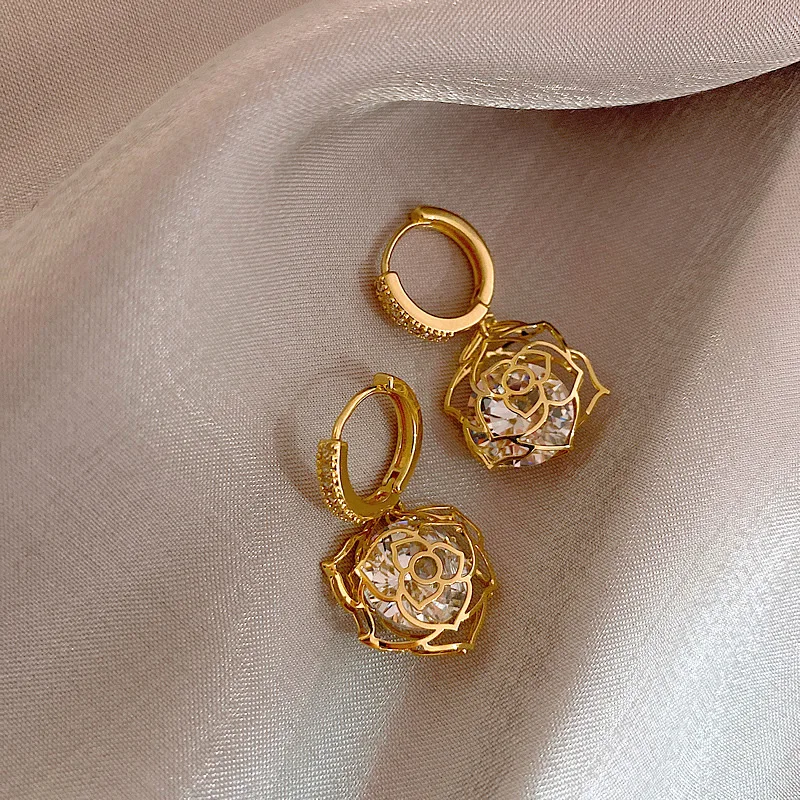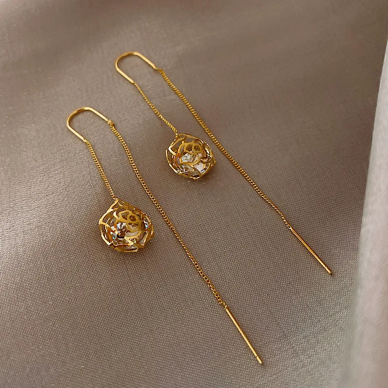 2021 корейские Модные полые серьги в форме цветка из циркония для женщин модные длинные серьги с кисточками в форме розы-Подвеска Цветок для девушек ювелирные изделия для вечерние Ринок