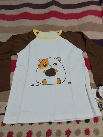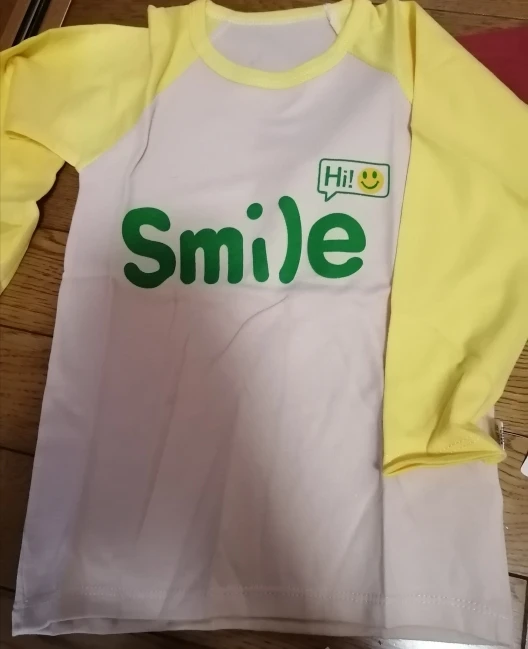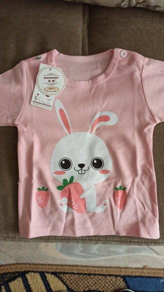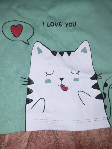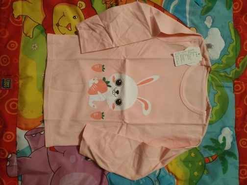 Цвет немного отличается (розовый для детей на фото продавца, но больше подходит к оранжевому/персиковому цвету в реальности). Также расстояние между изображениями героев мультфильмов немного меньше (напечатано на верхней части или на груди вместо середины рубашки, как показано на фото продавца). В противном случае футболка отличная.