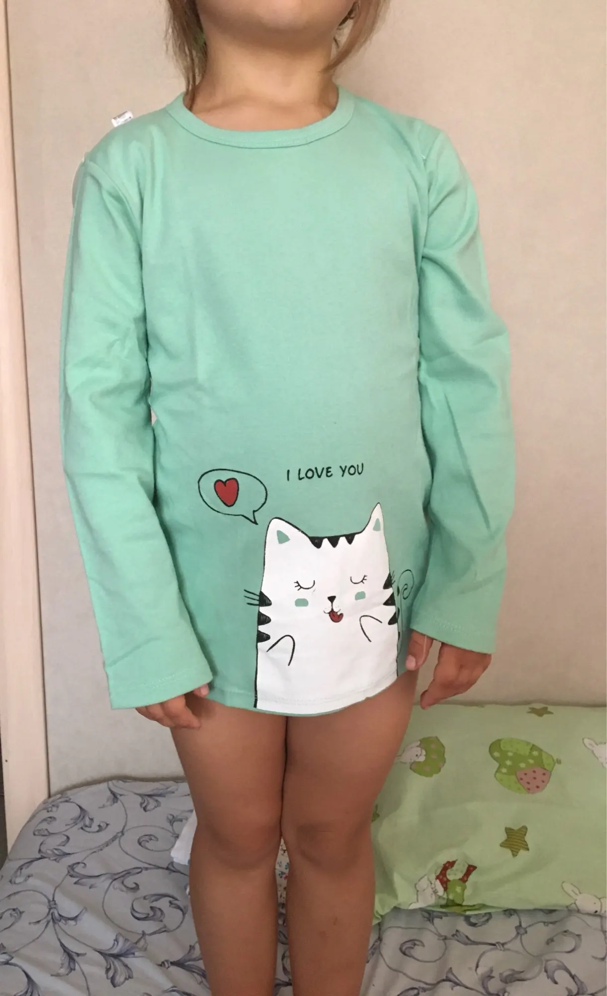 Футболка очень классная, мягкая из трикотажа всё как на фото, но только размер я заказывала 120, прислали 130 ладно хоть не меньше на размер.