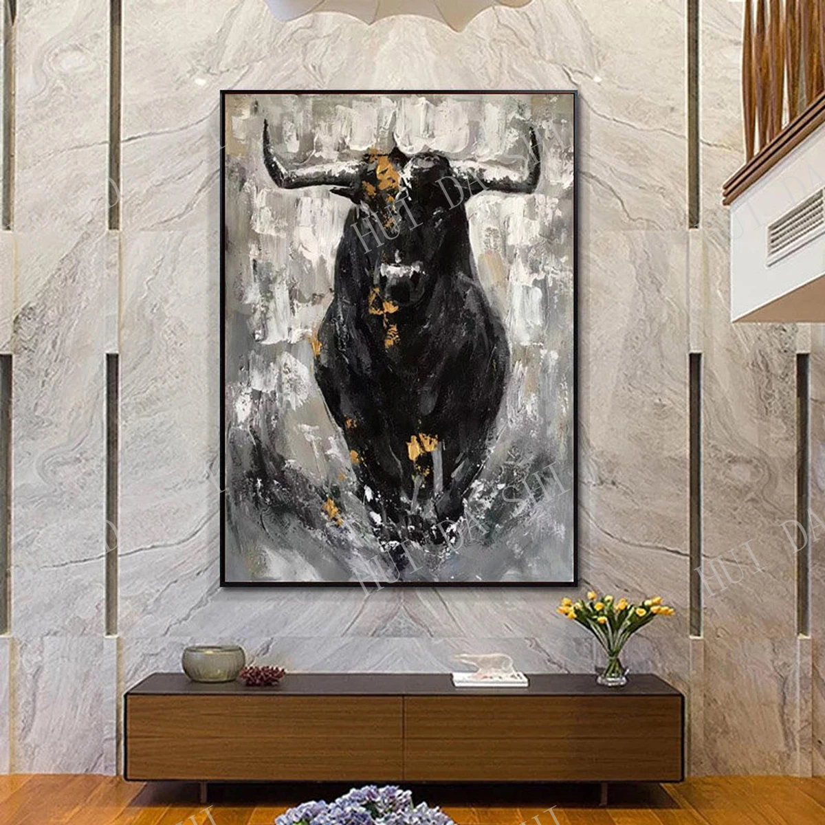 Картина абстрактная на холсте, Экстра большая, текстурированный реферат, бык