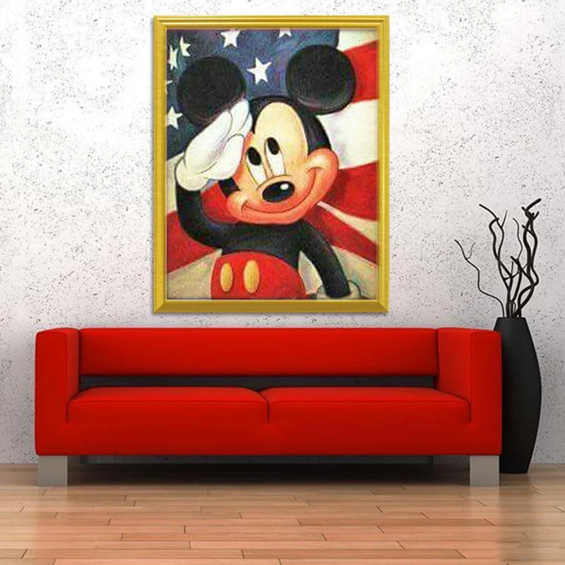 Disney Diy 5d алмазная картина с изображением Микки Мауса и флага, полностью квадратная круглая Вышивка крестиком, мозаика для домашнего декора стен