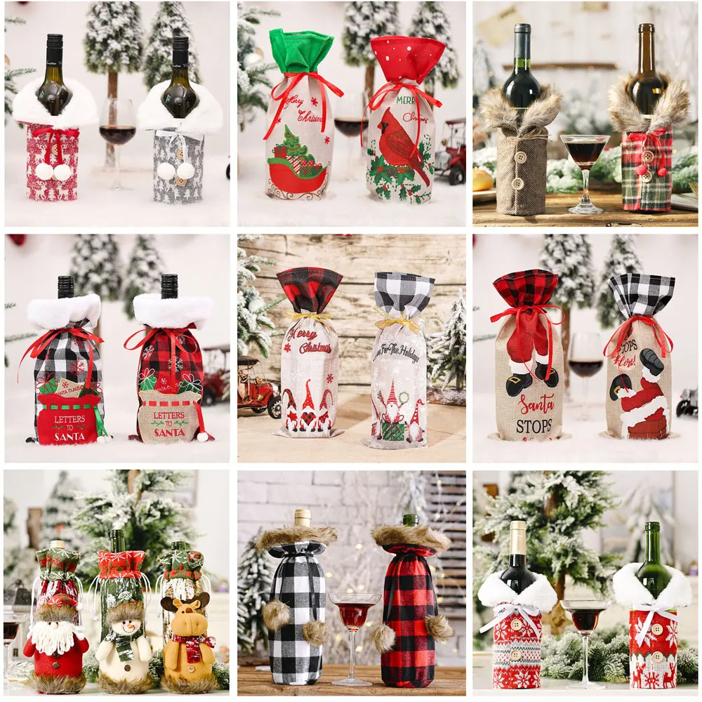 2022 Новогодний подарок, рождественский чехол для бутылки вина с Сантой, чехол для защиты от пыли, рождественские украшения для дома, Рождество 2021
