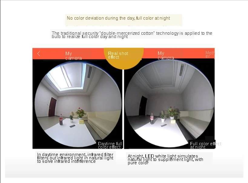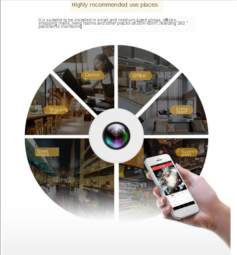 Платформа: 360eyes.club Датчик изображения: 1/3 Прогрессивное сканирование CMOS Встроенный объектив: 1,44 мм, 360 градусов Рыбий глаз объектив Угол обзора: 360 градусов Ручной Формат видео: MP4(1280*960P, хранение в мобильном телефоне) Стандарт сжатия видео: H.264(Storge in tf-карта) Стандарт сжатия аудио: G.711(Storge in tf-карта) Частота кадров видео: максимум 25 кадров Режим воспроизведения видео: Мобильный клиент Аудиовход и выход: Вход: Встроенный микрофон; Выход: Встроенный динамик